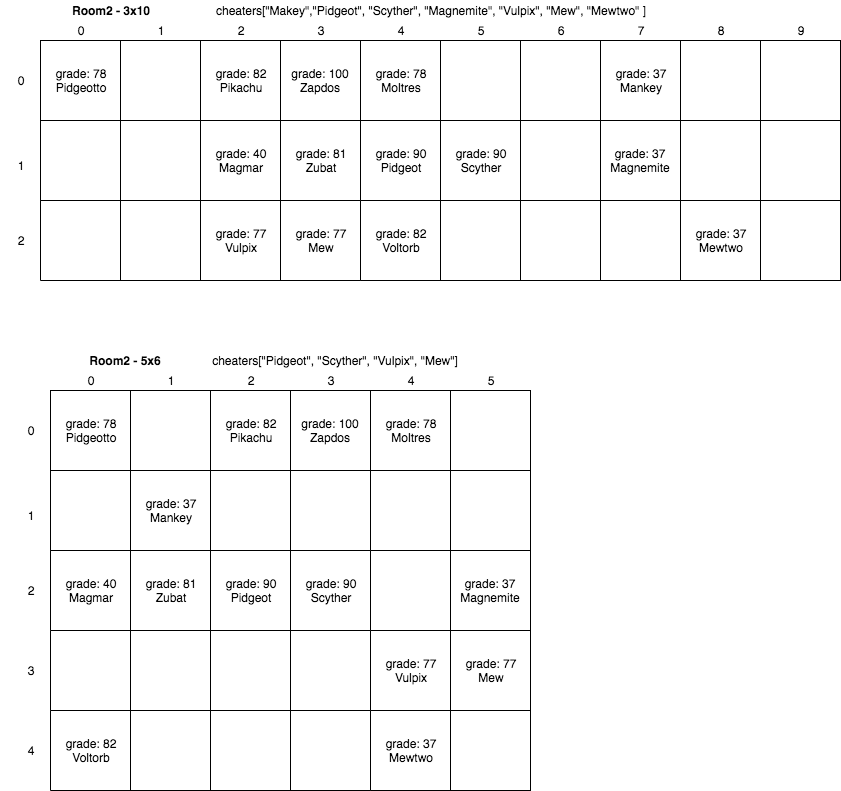 This function will use a “seating chart” to figure out which students cheated in the exam. The seating chart